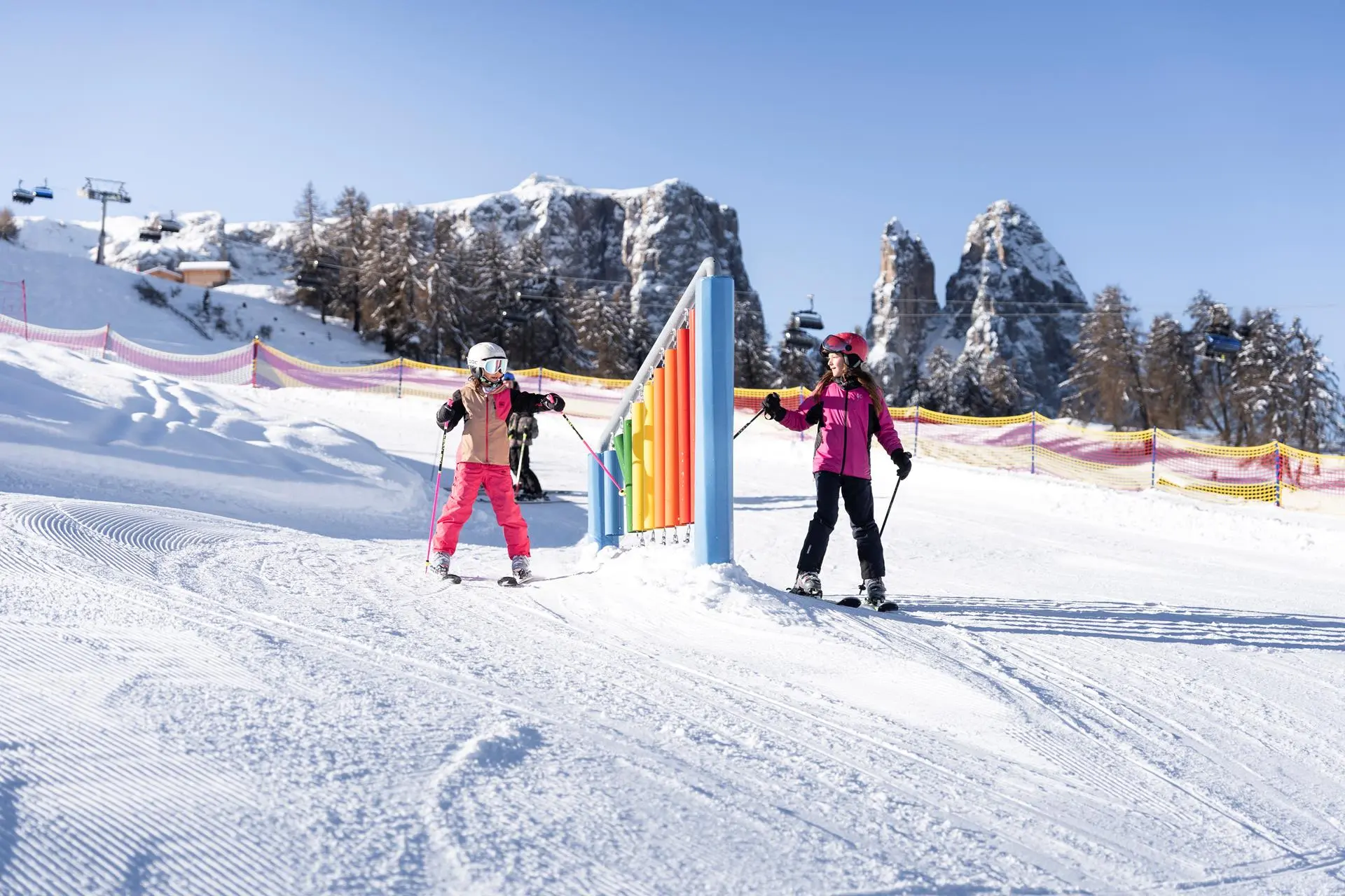 Außerdem verfügt das Skigebiet Seiser Alm über verschiedene Funparks und den mehrfach ausgezeichneten Snowpark Seiser Alm mit verschiedenen Lines. Dort kannst du dein Können unter Beweis stellen und dich so richtig austoben. Falls du heuer zum ersten Mal auf Skiern stehen möchtest, nimm wende dich einfach an eine der Skischulen. Neben dem Skikindergarten und der Kinderbetreuung bieten sie auch Skikurse für Kinder und Erwachsene an.