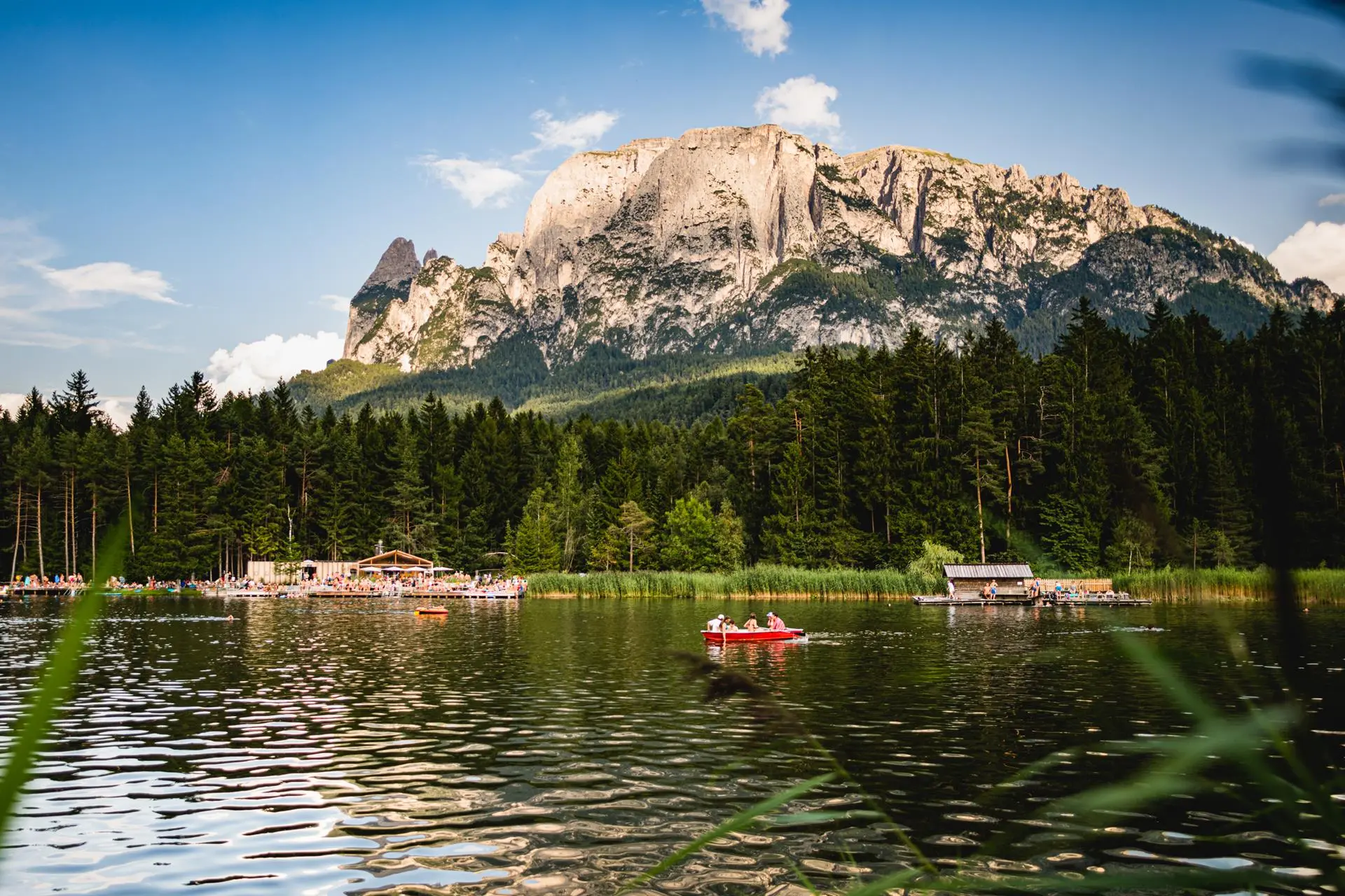 Völs und am Fuße des Schlerns liegt, zählt zu den saubersten Badeseen Italiens. Im separaten Babybecken können auch die Kleinsten planschen und spielen. Einheimische wie Urlauber:innen kommen gerne hierher. Entweder zu Fuß, mit dem Shuttle oder dem Auto, das du auf dem nahegelegenen, kostenpflichtigen Parkplatz abstellen kannst.