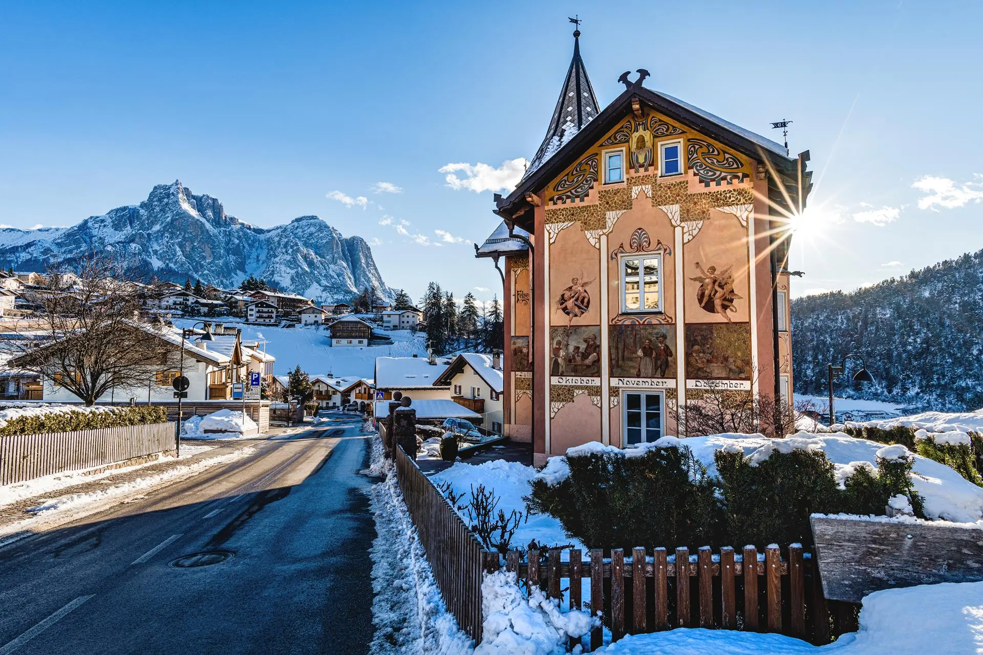 Kastelruth ist der größte Ferienort in der Dolomitenregion Seiser Alm und begeistert durch seine bemalten Häuser im historischen Ortskern. Der zählt zu den „Borghi più belli d’Italia“, den schönsten Ortskernen Italiens. Du wirst sehen: Im Urlaub in Kastelruth sind Flanieren und Shoppen einfach wunderbar. Sehenswert sind außerdem die klassizistische Pfarrkirche und der barocke Kirchturm, den du bei einer Führung besichtigen kannst. Von oben sticht der Kofel, eine Porphyrkuppe mitten im Dorf, ins Auge: Er ist Naherholungszone, Kreuzweg und ein Ort voller Abenteuer für Kinder.